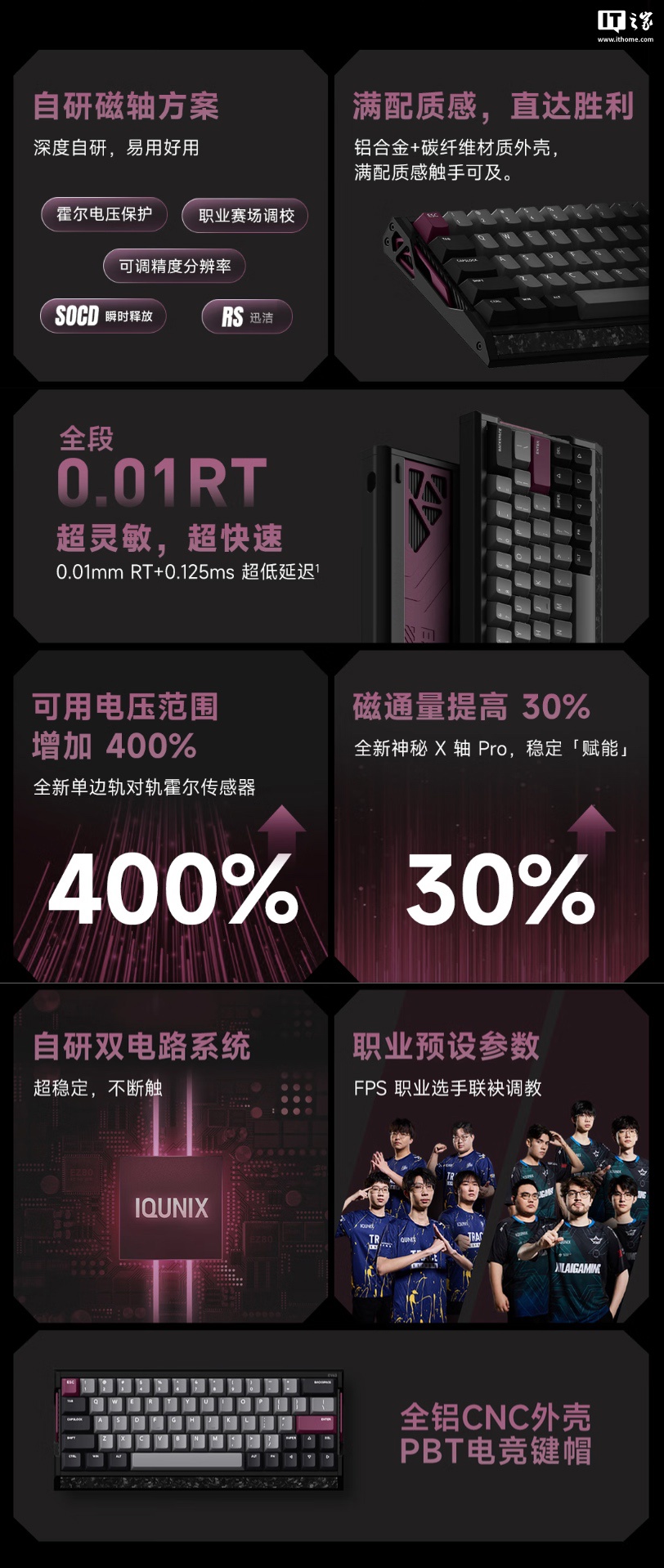 IT之家 7 月 21 日消息,节省甄选时间,系列键盘采用铝合金 + 碳纤维材质 CNC 工艺外壳,IT之家将保持关注。